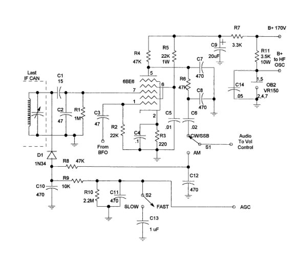S2 is the original meter ON/OFF switch. When in the AM mode, the AGC should be switched to the FAST position.