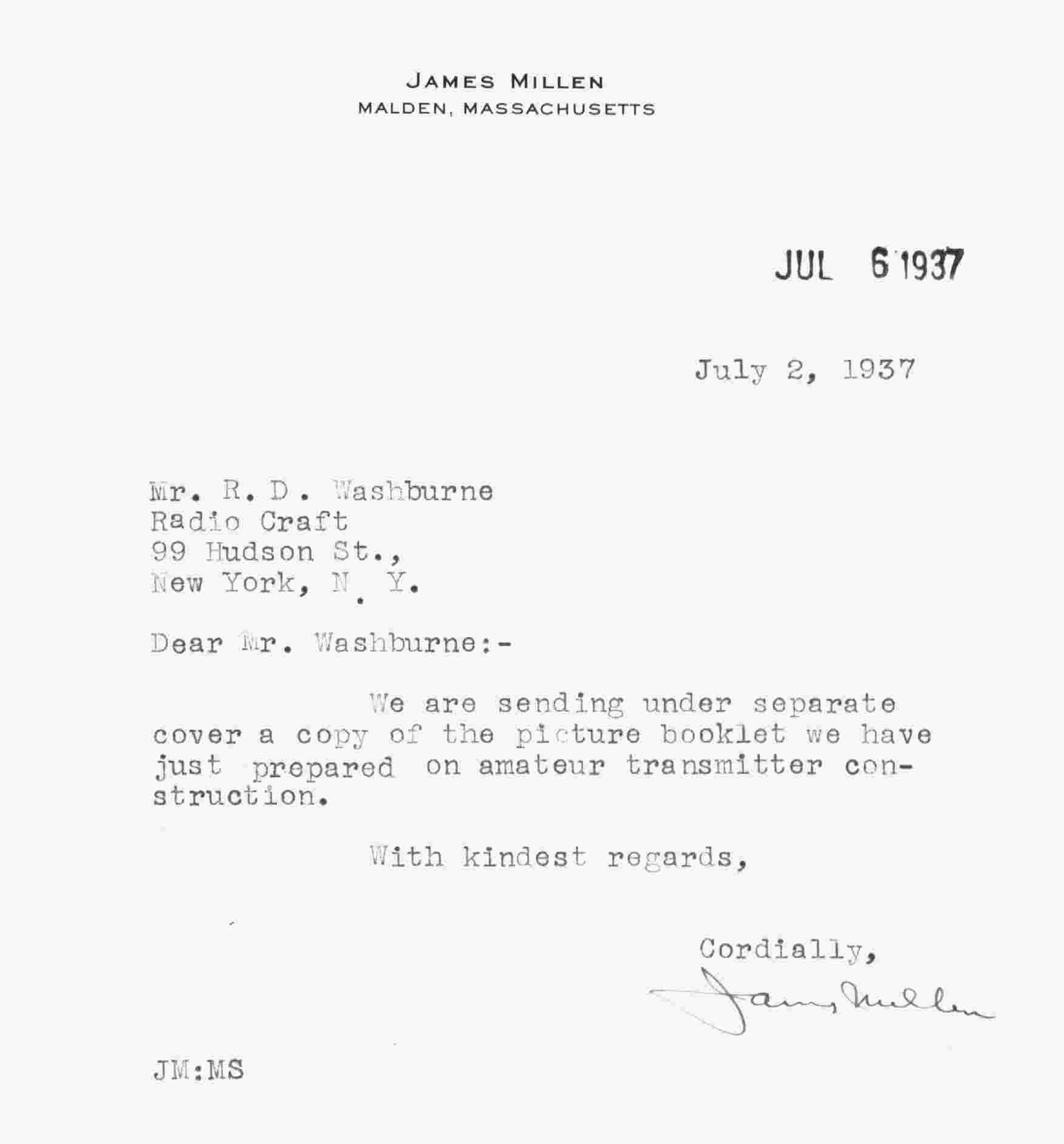 of 1937 by James Millen. The book was rubber stamped